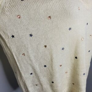 NEW WILDFOX ivory sweater cream star & heart v-neck oversized sample S