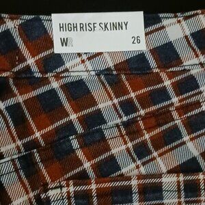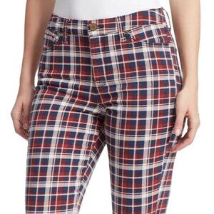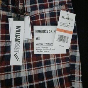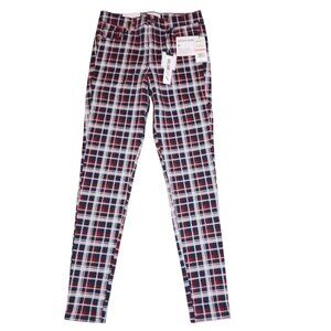 NEW WILLIAM RAST High-Rise Plaid Skinny Jeans, Size 26, Red/White/Blue
