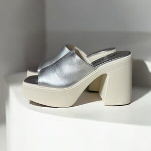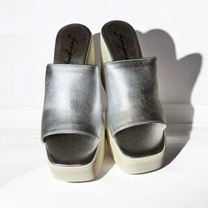 🌻NEW WITH BOX Free People Silver Leather Zoe Platform Sandals EU 38.5 | 8.5