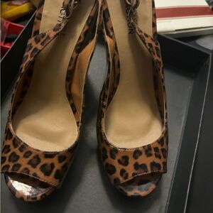NEW WITH BOX Kenneth Cole Reaction Women’s Animal Print Peep-toe Wedge Cork 7M