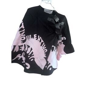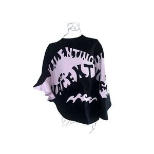 NEW WITH TAG Beautiful VALENTINO Logo Virgin Wool Blend Ruffled Cape BLACK AND PINK retails $8300