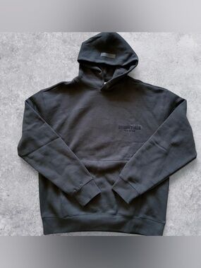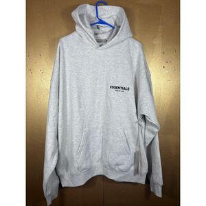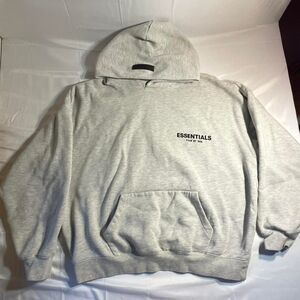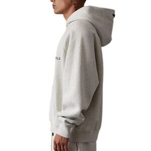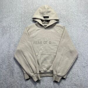Elevate your streetwear game with this FOG ESSENTIALS hoodie in a trendy light oatmeal color. Featuring a double-line front and back letter flocking design, this hoodie offers a stylish and comfortable fit.