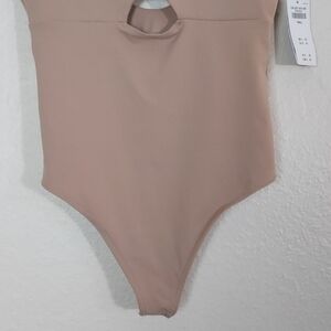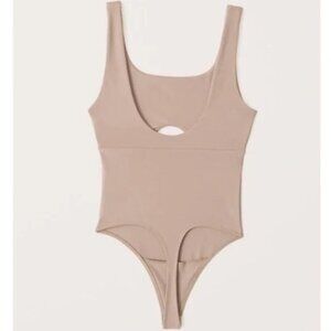 NEW WITH TAGS Abercrombie & Fitch Bodysuit Square Neck Cutout Nude/Tan Small