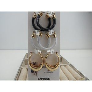 NEW WITH TAGS EXPRESS SET OF 3 SHINY GOLD HOOP EARRING SET