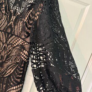 NEW WITH TAGS Farm Rio "Nature Black Guipure Midi" Black Dress