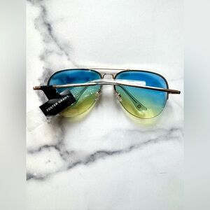 NEW WITH TAGS Foster Grant Aviator Gold Frame Rimless Blue Fade Sunglasses