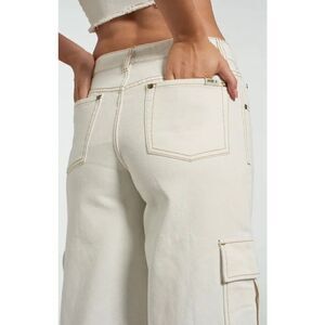 NEW WITH TAGS Milk It Jagged Combat Wide Leg Full-Length Cargo Denim Jeans Ivory
