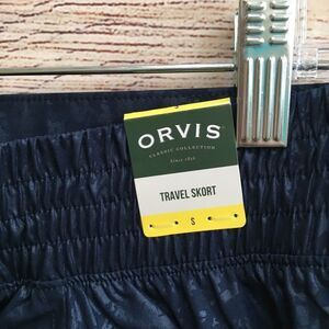 NEW WITH TAGS ORVIS TRAVEL SKORT IN NAVY BLUE SHATTERED GLASS EMBOSSED PRINT