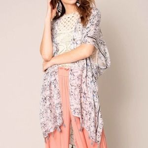 NEW WITH TAGS OS Silver Floral Tassel Kimono Cover Up