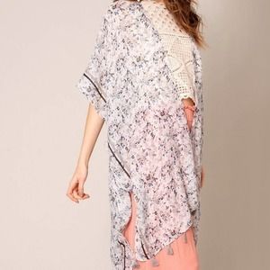 NEW WITH TAGS OS Silver Floral Tassel Kimono Cover Up