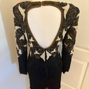 NEW WITH TAGS VINTAGE 100% SILK FULL SEQUINED OPEN BACK COCKTAIL DRESS SIZE S