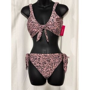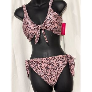 NEW WITH TAGS Xhilaration High Leg High Waist Metallic Mauve Animal Print two piece Bikini SIZE Medium bottom large top) Two Piece swimsuit