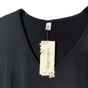 NEW WITH TAGS Xinyiyifang Black V-Neck Solid Long Sleeve Shirt Flow Top Sz XL