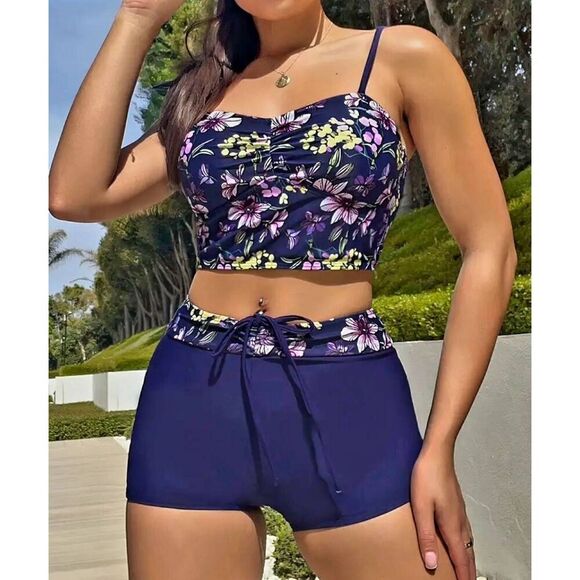 NEW WITH TAGS CHIC ME TANKINI SET POMS SIZE MEDIUM BOY SHORT BOTTOMS