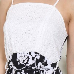 NEW WOMEN’S ARRIVAL SKINNY SPAGHETTI STRAP BLACK WHITE FLORAL SKIRT MIDI DRESS
