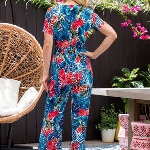 NEW WOMENS ARRIVAL TROPICAL FLORAL CROPPED BOW TIE BLUE MULTI FLORAL JUMPSUIT