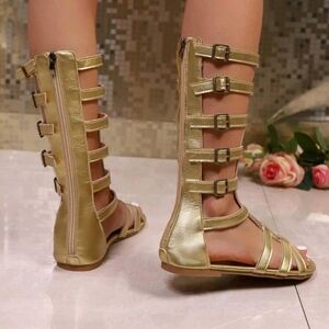 NEW WOMENS ELEGANT ZIPPER-BACK HOLLOW FLAT ROMAN-STYLE SANDALS
