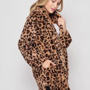 NEW WOMENS FAUX FUR SUPER SOFT LEOPARD TEDDY JACKET