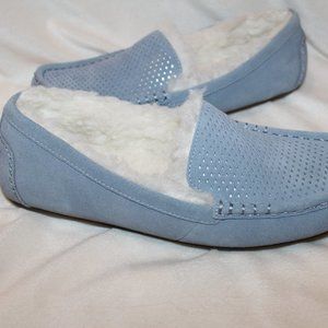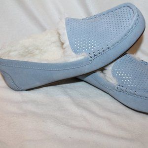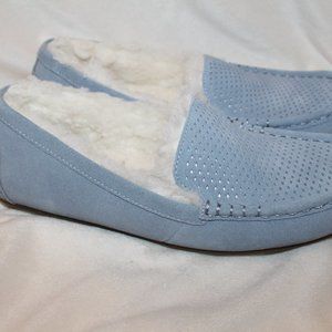 NEW WOMEN'S LEZLY SUEDE FUR LINED SLIPPED ON SLIPPERS LIGHT BLUE 6
