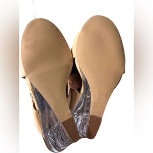 NEW WOMEN’S PLATFORM WEDGE OPEN TOE CHAIN EMBELLISHED HEELS SIZE 11 COLOR TAN
