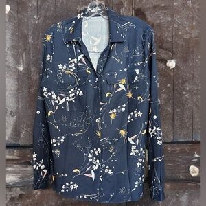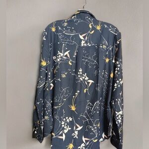 NEW WOMENS PRINTED FASHION LONG SLEEVE BUTTON DOWN V NECK CASUAL DRESS SHIRT L