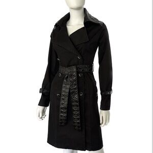 -Faux leather Belt, collar, cuffs, and pockets trim
