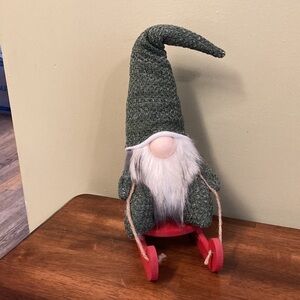 WOODLAND COTTAGE WINTER GNOME ON RED WOODEN SLEIGH