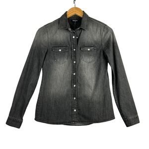 NEW WOOLRICH Steel DENIM Button Up Pearl Snap STONE WASH Cotton Shirt XS