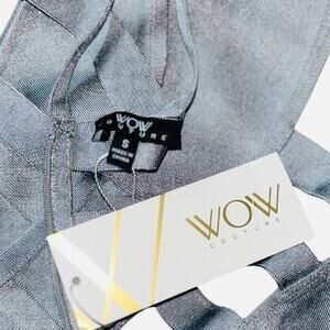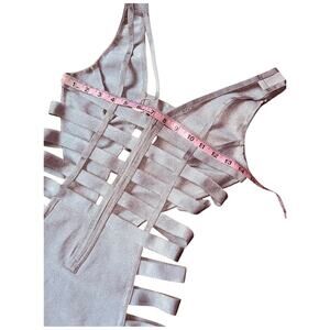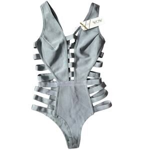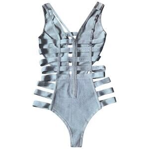 NEW WOW Couture SILVER Sexy Strappy Cheeky Bandage One Piece Swimsuit Size Small