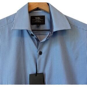 NEW WRK Men’s 4 Way Stretch Shirt Sz M 15.5 Blue Grid Stretch Quick Dry Comfort