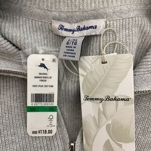 NEW W/T TOMMY BAHAMAS L/XL SHIMMER BONITA ZIP SWEATER PONCHO PEARL GRAY HEATHER