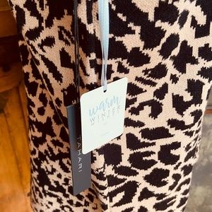 NEW W/TAGS TAHARI FAUX LEOPARD Knit SWEATER Mock Crew Neck Long Sleeve Size L