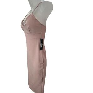 NEW W/Tags Lulus Don’t Tell ‘Em Blush Pink Bodycon Midi Dress Fitted Stretchy Sm