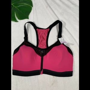 NEW $72 Wacaol Zip Front Underwire Sports Bra in Hot Pink/ Black [SZ 30D ] #L617