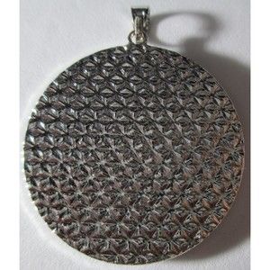 The pendant is 30 mm in diameter, and is made of Zinc Alloy is lead free and nickel free.