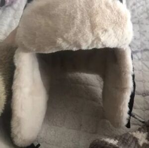 Comfortable and warm faux fur on ear flaps and forehead soft to touch.