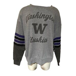 NEW Washington Huskies Colosseum Striped Loose Crewneck Sweatshirt Women M NCAA
