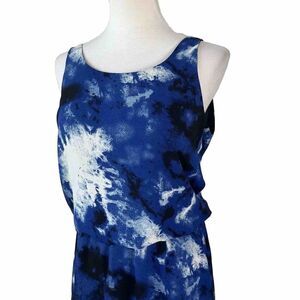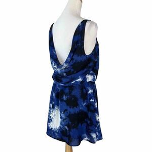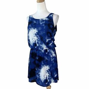 NEW Watercolor Dress Blue Sleeveless Fit Flare Drape Small Low Back