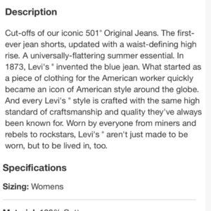 NEW Waterless Levi’s 501 Black Distressed Raw Hem High Waisted Size 29 Shorts