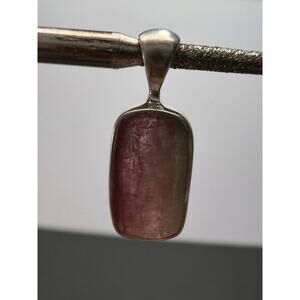 Genuine watermelon tourmaline set in authentic 925 sterling silver. Pendant has a total weight of 1.32 grams . Measurements are 7.7x19.3 mm. This is for the pendant only. Chain not included.
