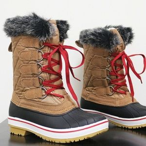 NEW🔥 Waterproof Lace Up Faux Fur Snow Mid Calf Duck Boots Rubber Lug Platform