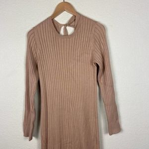 NEW Wayf Ribbed Knit Sweater Dress Midi Tan Cutout Tie Emily x Dede Size Medium