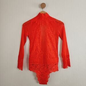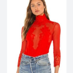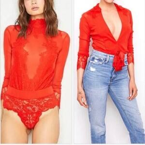 NEW We Are Hah Free People Take HAH Bow Reversible Lace Bodysuit Red