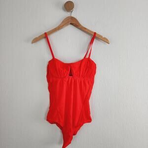 NEW We Are x Free People HAH Blood Orange Under The Wire Mesh Bodysuit