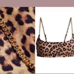 NEW We Wore What Cami Bra Crop Top Chain Straps Brushed Leopard Print