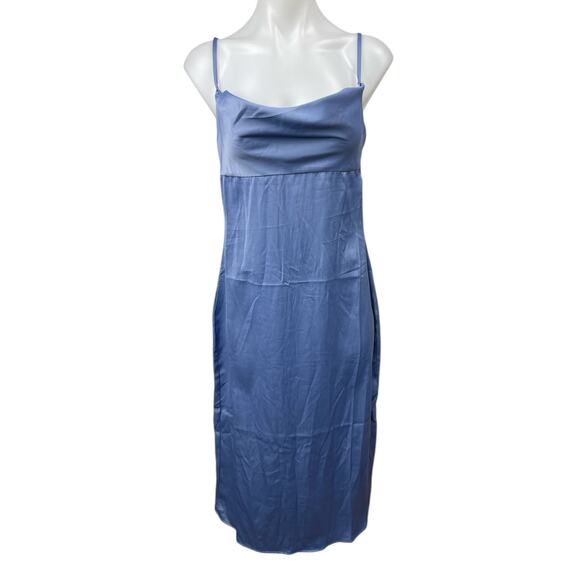NEW WeWoreWhat Women's Blue Satin Sleeveless Cowl Neck Midi Cami Camisole Tank Slip Dress XL