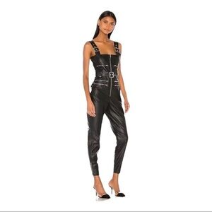 NWT We Wore What Moto Vegan Leather Overalls Black Size XS.