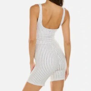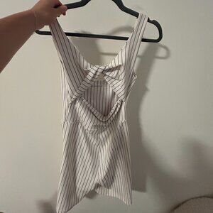 NEW WeWoreWhat Small White Black Pinstripe Twist Cutout Bodysuit