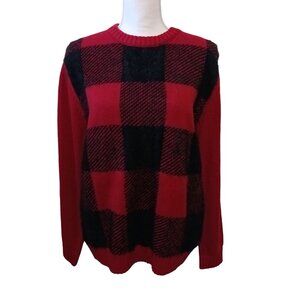 NEW Weatherproof Vintage Buffalo Check Crew Neck Sweater Black & Red Size L