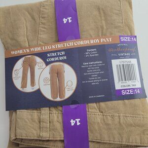 NEW Weatherproof Vintage Corduroy Womens 14 Tan Wide-Leg Pants // 26PT